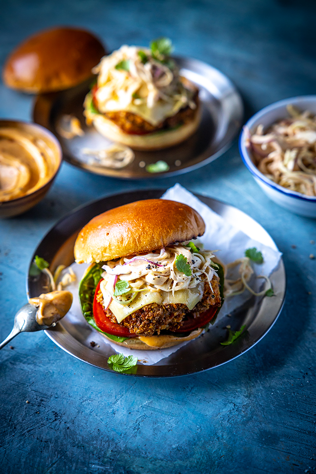 Air-Fried Cajun Chicken Burgers with Spicy Mayo