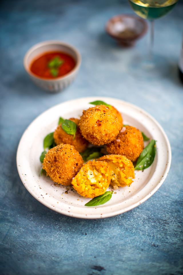 Mozzarella Arancini with Sweet & Spicy Marinara