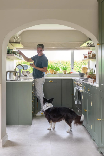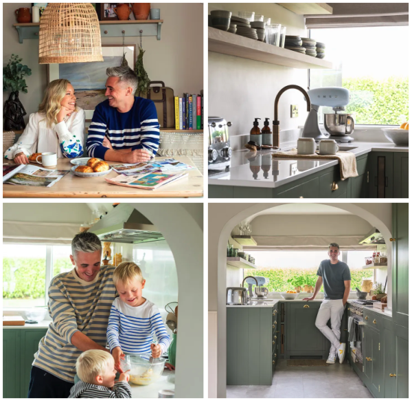 We opted for the elegant simplicity of the Suffolk kitchen, with well laid out spice drawers, concealed bins, backlit cupboards and a pantry cabinet with adjustable shelves. The colour was a huge deliberation for us, having considered a dark blue at first, but ultimately opting for the more timeless Neptune’s Cactus eggshell paint for the cabinetry. The rich depth of the green matched well with the cosy cottage aesthetic and creates a great backdrop for my video content.
