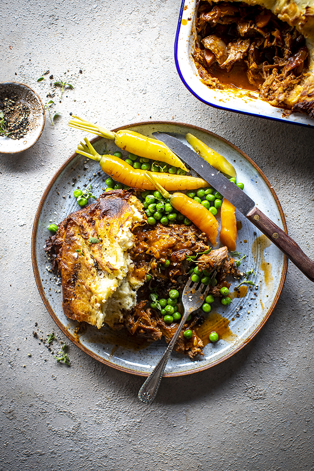Excuse the expletives but this is a next level Shepherds Pie and one that perhaps takes a little long to prepare but is a total showstopper for your next night in with a glass of wine. Tender braised lamb shanks are shredded and coated in a rich sauce and topped with the creamiest velvet mash to make truly one of the most decadent takes on this family classic.