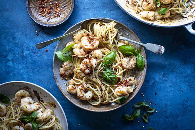 Seafood pasta has always been a crowd pleaser in my house. If any of your dinner party are not big fish eaters, prawns are a very subtle seafood to start with, so try this Spicy Shrimp Spaghetti!