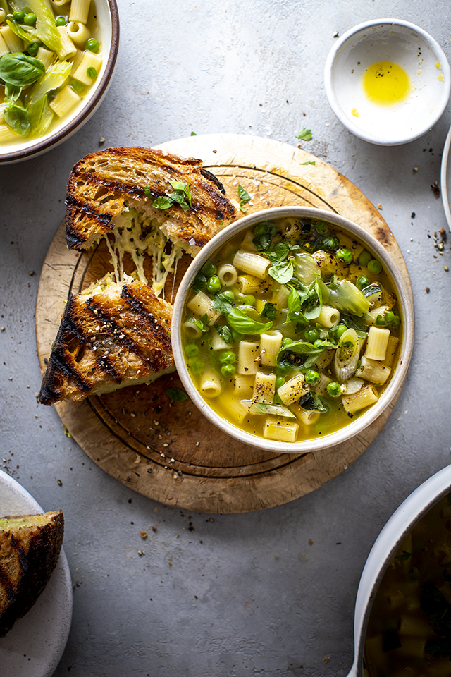 Lastly something a little lighter and fresh tasting in the form of a Greeneroni Soup that is best served with a slightly alternative cheese toastie with finely grated broccoli – a genius little tip if you need to entice the kids into eating their greens. A simple but hearty soup that will see you through the week.