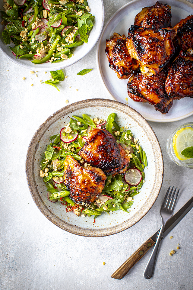 Sweet Chilli Chicken with Nam Pla Sugar Snap Pea Salad