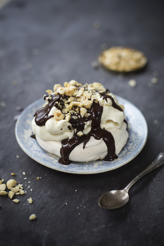 Booze and chocolate for Valentine’s day are a must and you will get a fix of both in my recipe for chewy coffee scented pavlova style meringue nests, dolloped with whipped cream drunk on Irish whiskey and slathered in a simple to make cheats chocolate sauce.