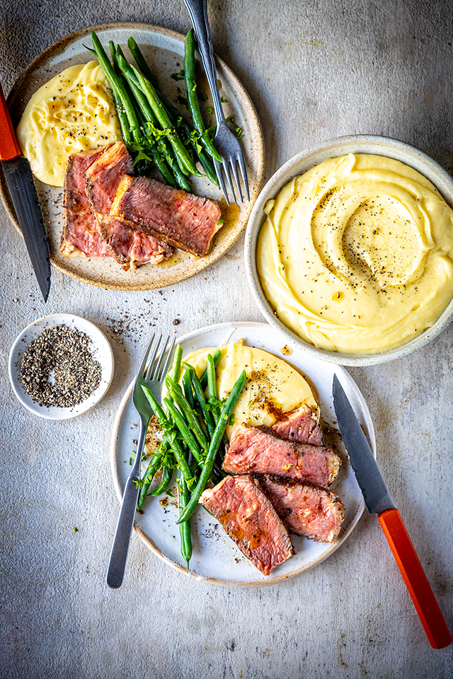 Seared Côte De Boeuf Steak with Pommes Aligot and Green Beans