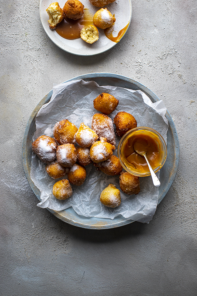 A no fuss quick fix donut recipe that can be made in minutes. Skip the homemade caramel with a jar of dulce de leche for even speedier results.