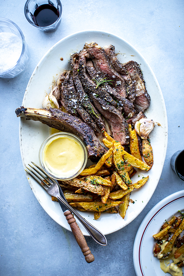 Nail your steak game with this reverse sear method which almost guarantees great results particularly when you are cooking with an expensive cut of meat – it’s essential to use a meat thermometer to achieve perfectly medium rare meat. While you’re at it, master your homemade chip game with this slightly alternative but simple method and finish it all off with some homemade aioli and you’ve got killer steak frites!