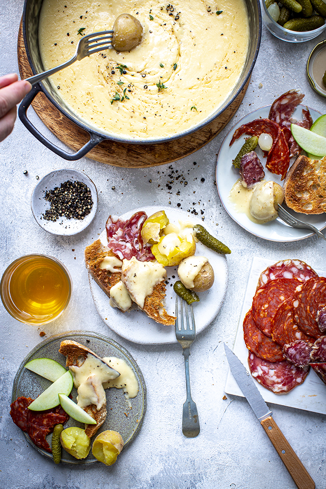 A cheese fondue is one of those meals that instantly evokes all things kitsch and retro. A throwback to a style of eating made popular in the 60’s and 70’s it’s a bit of fun and makes for a great sharing meal for two.