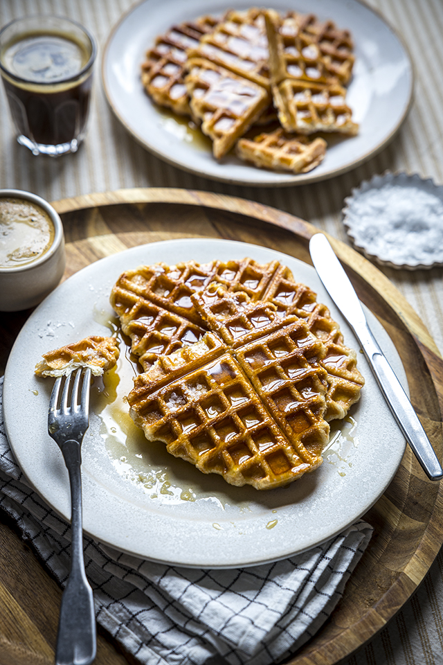 These days in the rush and bustle of weekday mornings I’ve gotten into the bad habit of swigging a coffee and heading out the door, but on the weekend, I take the time to make something special. Shakshouka eggs are a fave with spinach and beans tossed through or oaty pancakes, a favourite with our two boys. More recently, we tried waffling croissant dough which results in pretty spectacular waffles with zero effort- shall we call them Croffles? Drizzled with maple syrup and sea salt they are memorable!