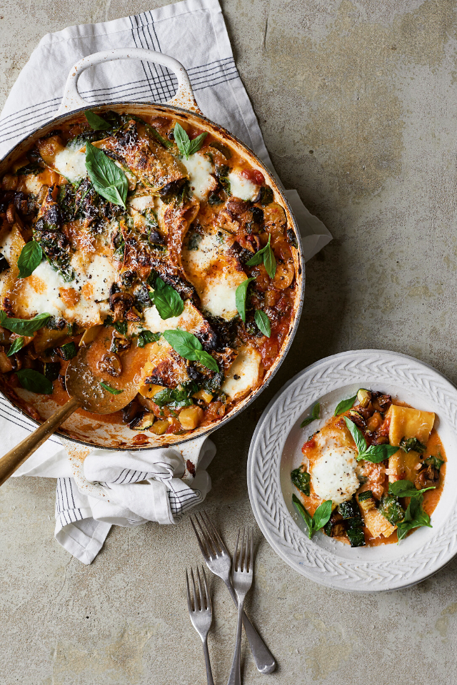 One pan dishes get plenty of flack online but anyone who has cooked my one pan pasta recipes will know the convenience of plonking all the elements into a pot and tending to the pan until you have silky spaghetti and stonkin’ sauce. Pasta recipes tend to be easy by nature but if you need dinner by numbers, this method is for you. A mid-week lasagne might sound dreamy but somewhat unattainable for many of us coming home from a long day of work, but I want to introduce you to the one pan veggie lasagne. It’s packed full of greens and uses fresh pasta to simplify things before a stint under a hot grill to take mozarella to a melty, oozy dream land. Traditional it ain’t but on guaranteed veggie glory, it seriously delivers.