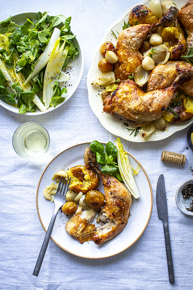 Confit Chicken with 20 Garlic Cloves, Rosemary & Thyme