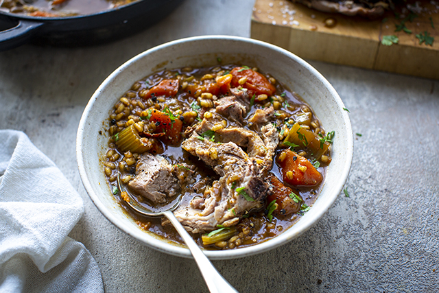 This is a hearty stew that will blip and bubble it’s way to tenderness, filling the kitchen with warmth and one that requires no more than a stack of bowls and perhaps some good crusty bread to mop up the juices to serve.
