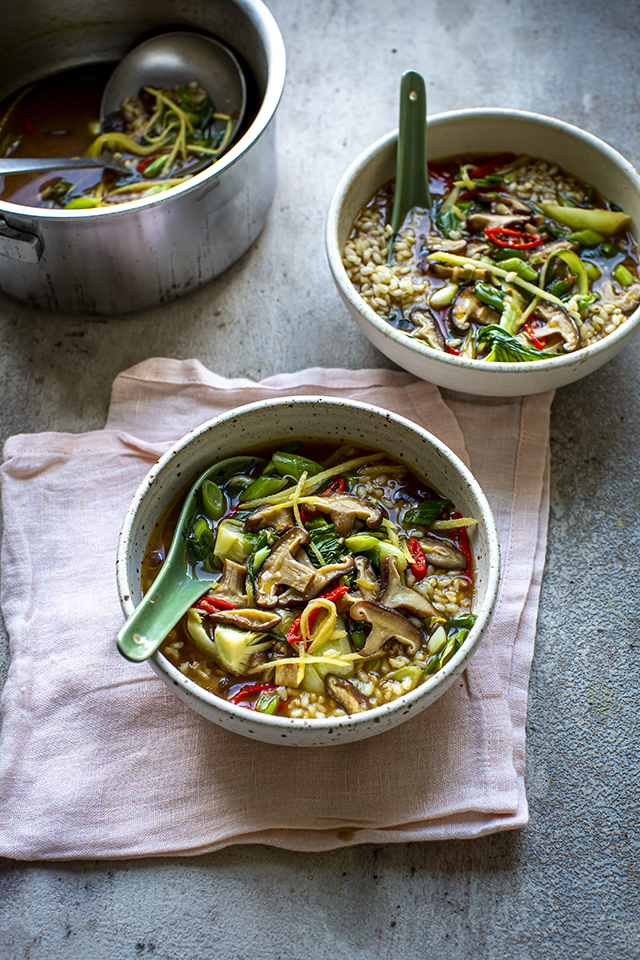 There is something instantly restorative about a broth like this. Even the worst head cold would find it hard to withstand its soothing elements. Miso is a fermented paste most commonly made from soybeans and adds an essential salty umami taste to this soup.
